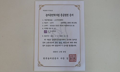 농어촌민박사업 등급결정 증서